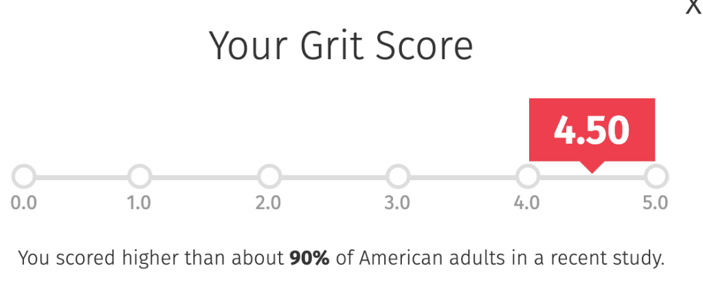 P.S. Angela has some really cool info on her website… even a quick quiz to see your Grit score… below is mine…take the quiz, see your GRIT!