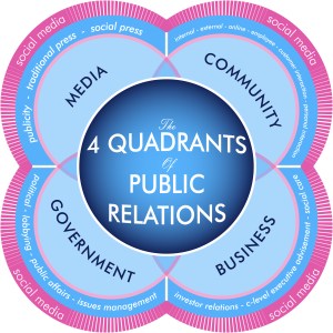 Within these four quadrants: Media, Community, Government, and Business, all functions of Public Relations fall. As practitioners we must be well versed in each quadrant.